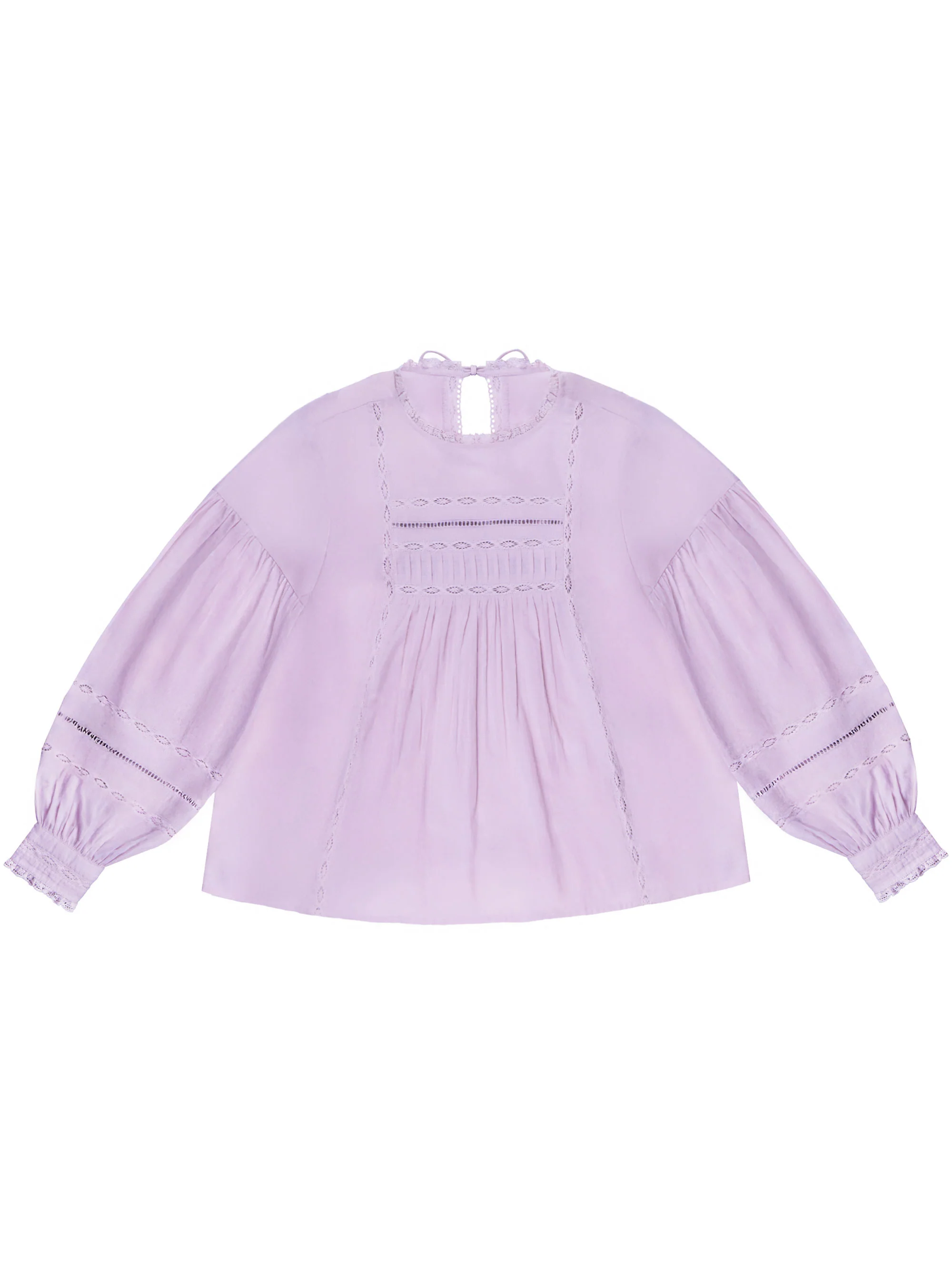 Magenta Gathered-Sleeve Cotton Voile Midi Dress