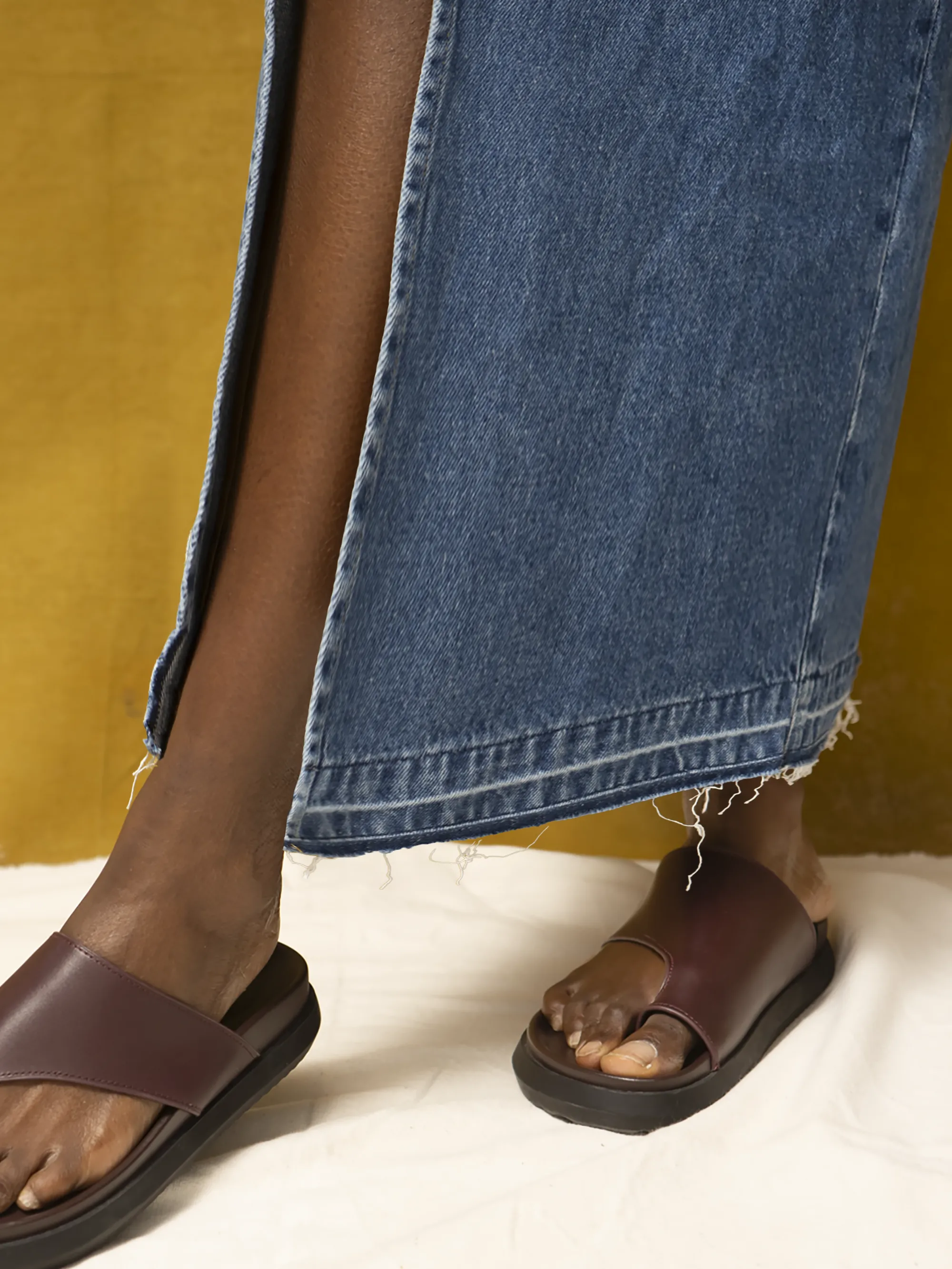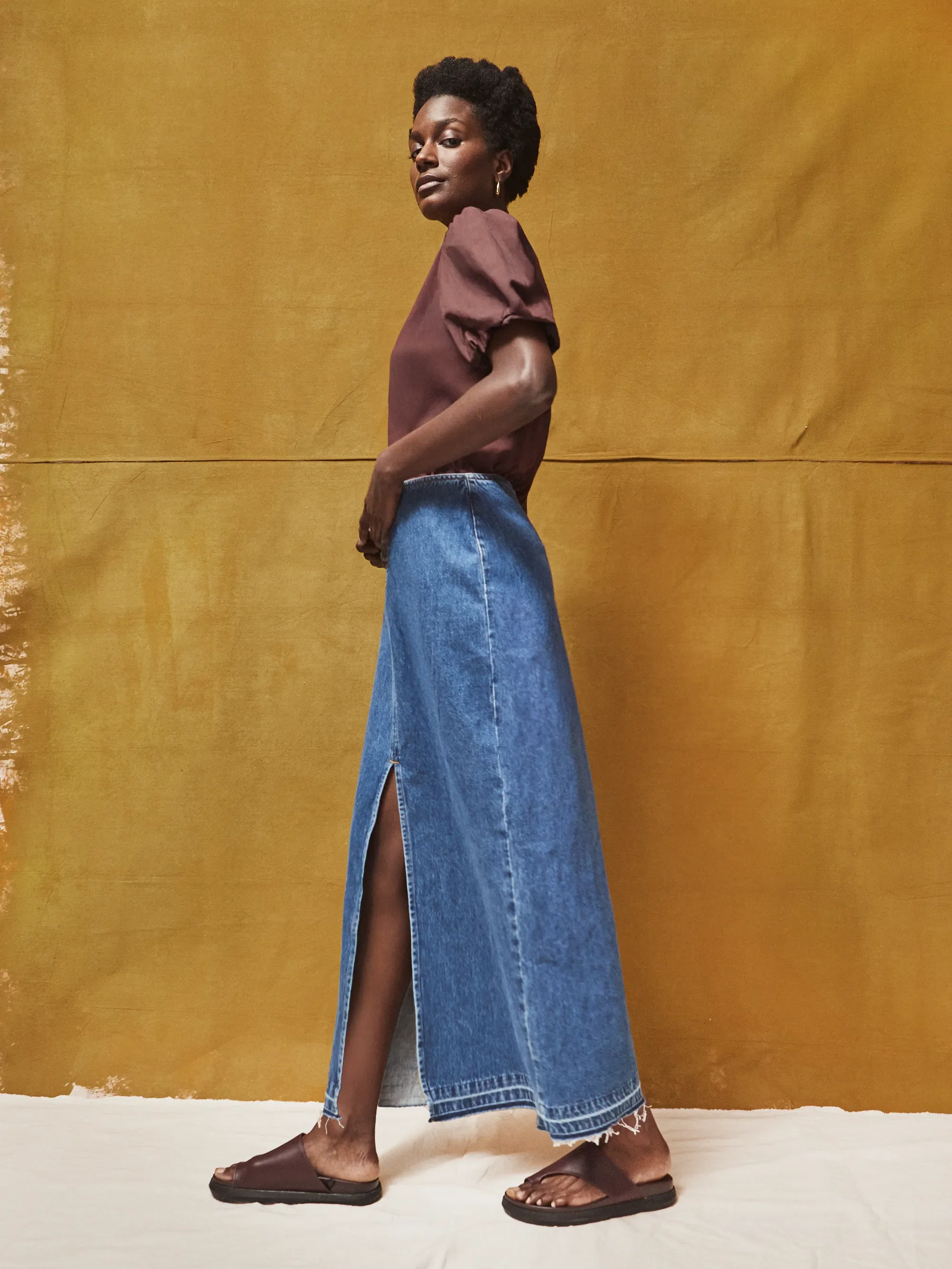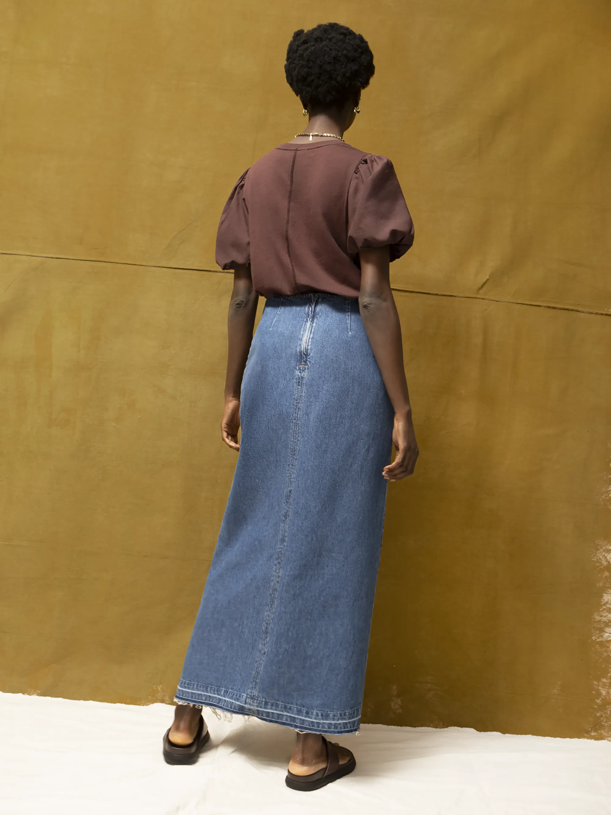 Blue Denim Split Front Maxi Skirt