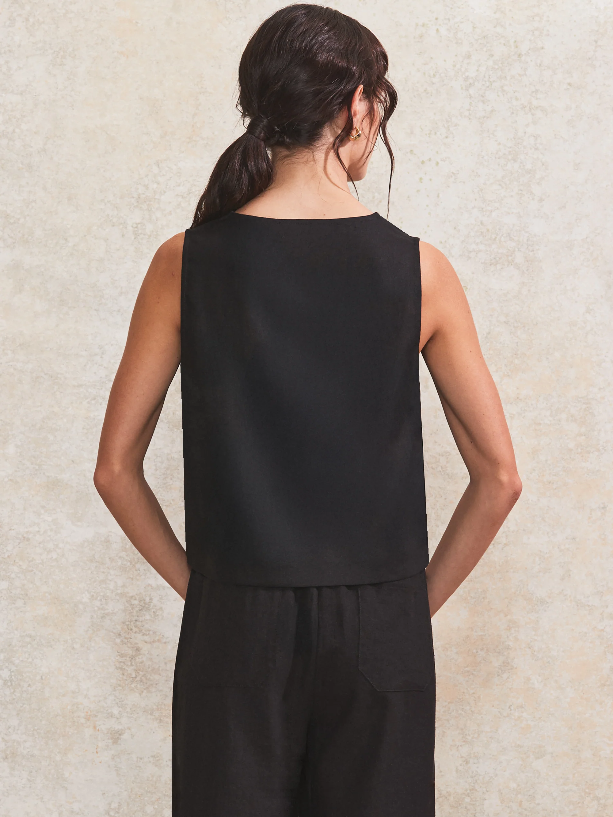 Black V-Neck Linen-Blend Top