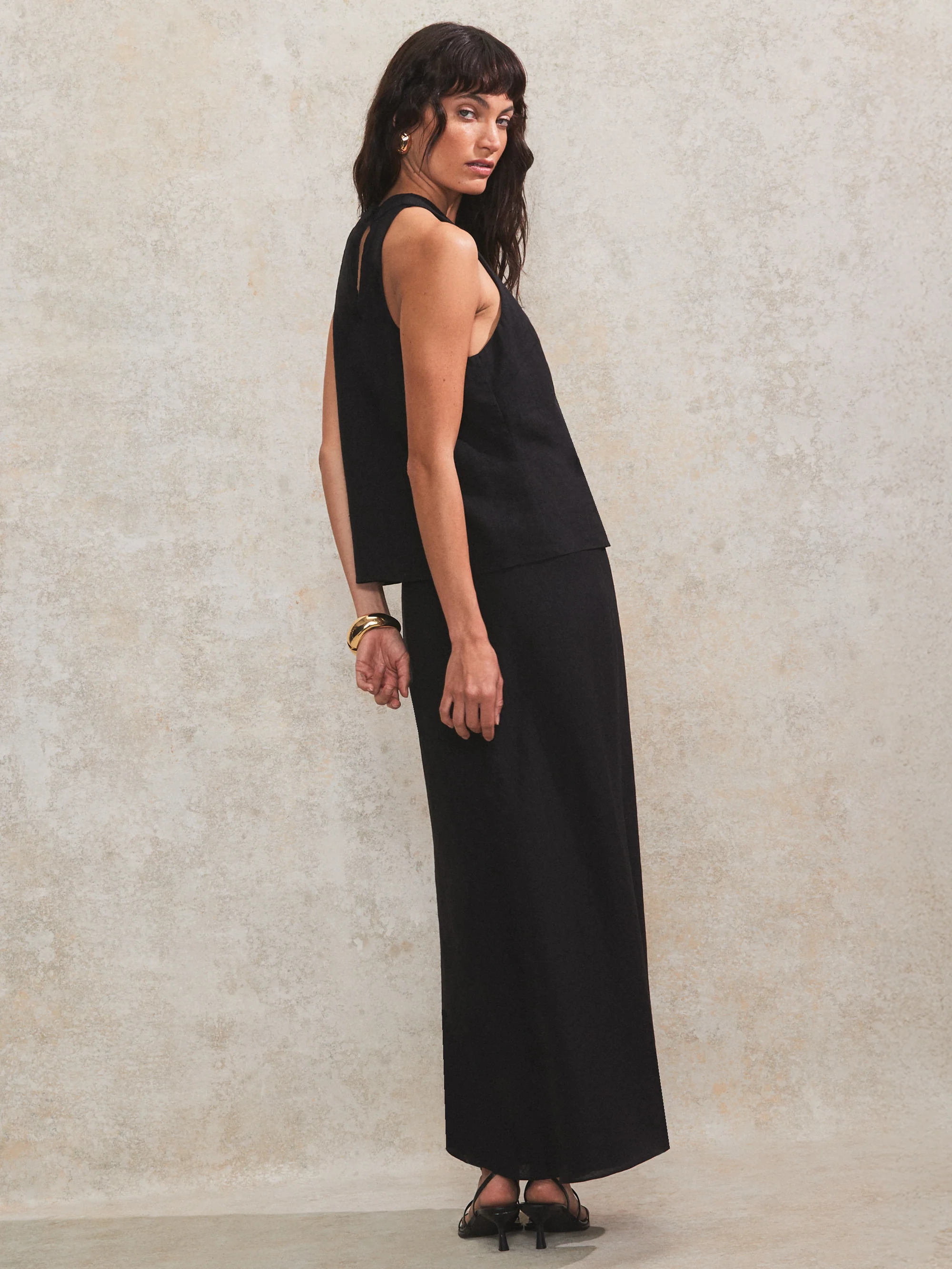 Petite Black Linen-Blend Bias-Cut Maxi Skirt