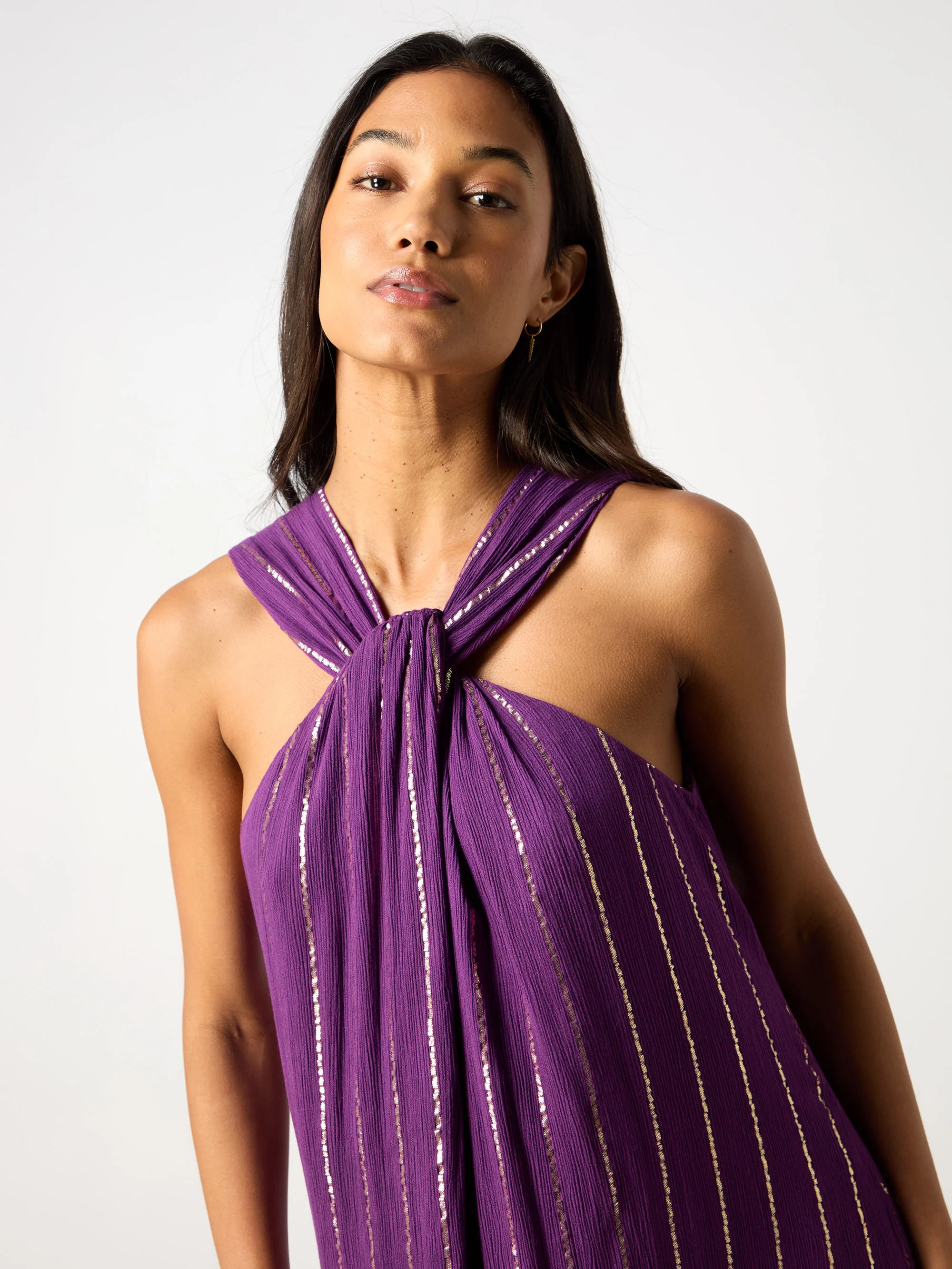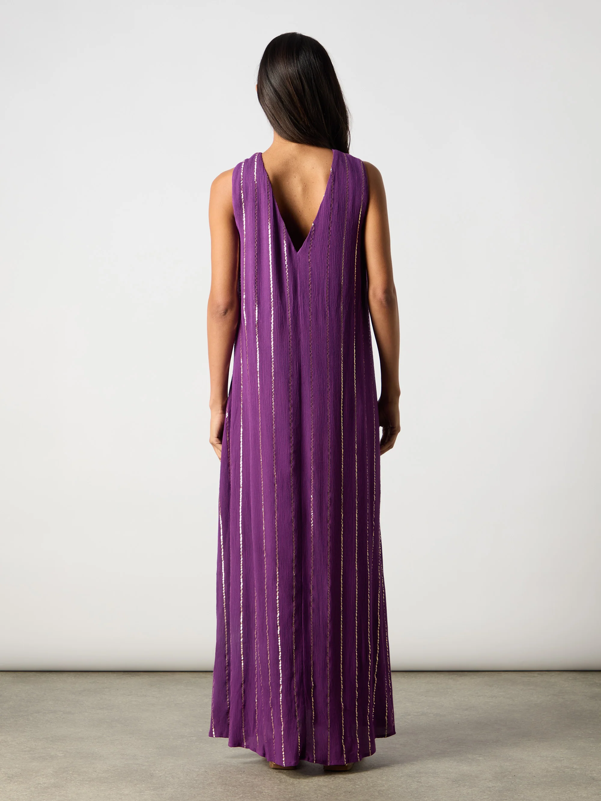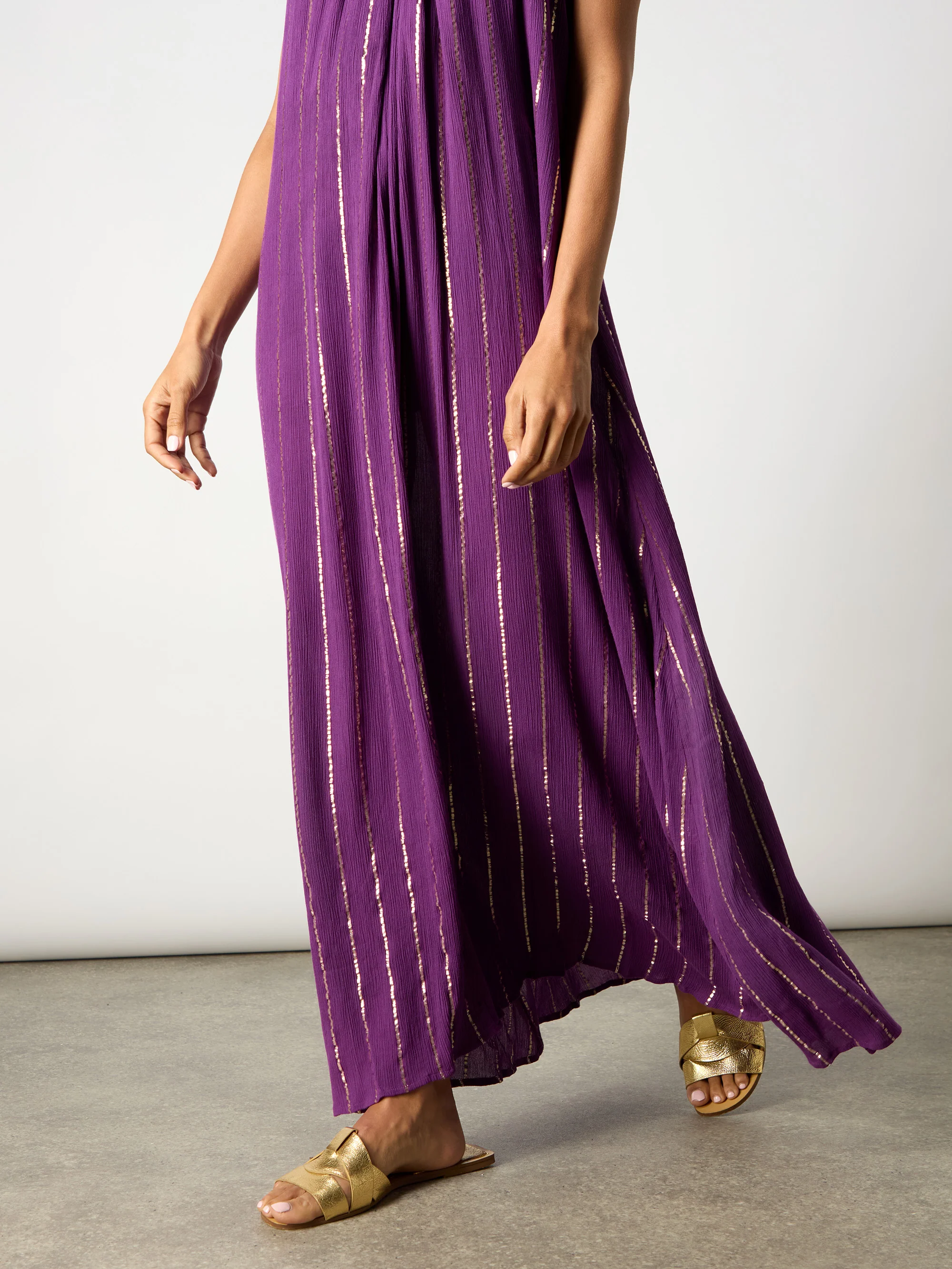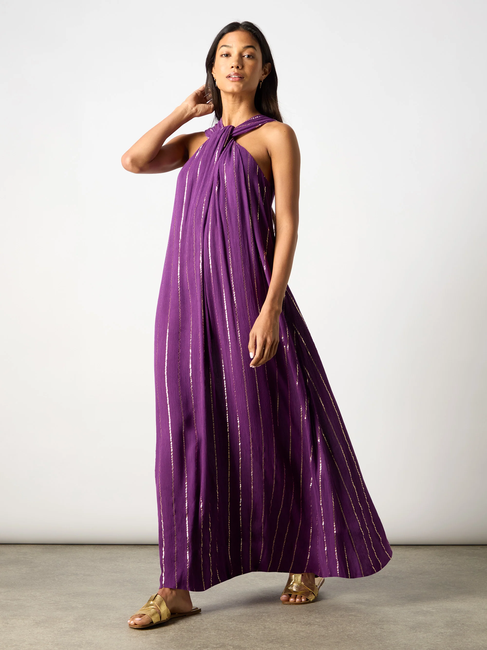 Purple Lurex Twist Neck Maxi Dress