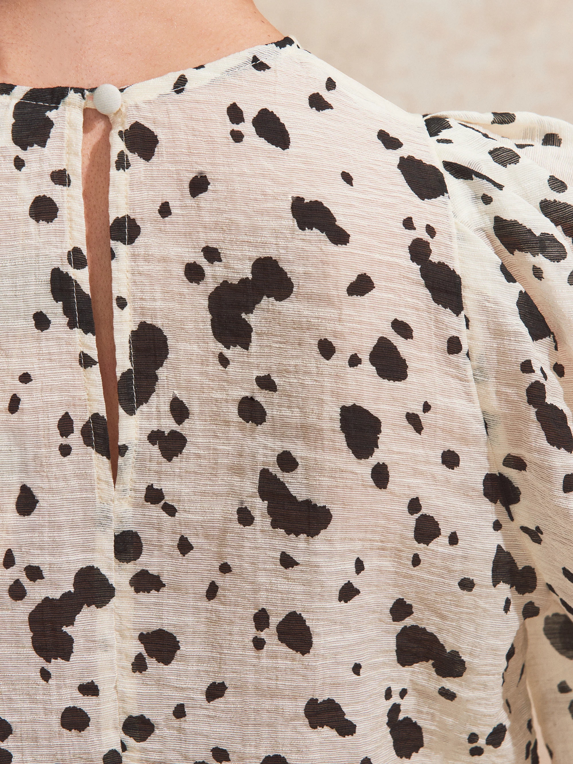 Seraphina Magenta Floral-Print Gathered-Sleeve Dress