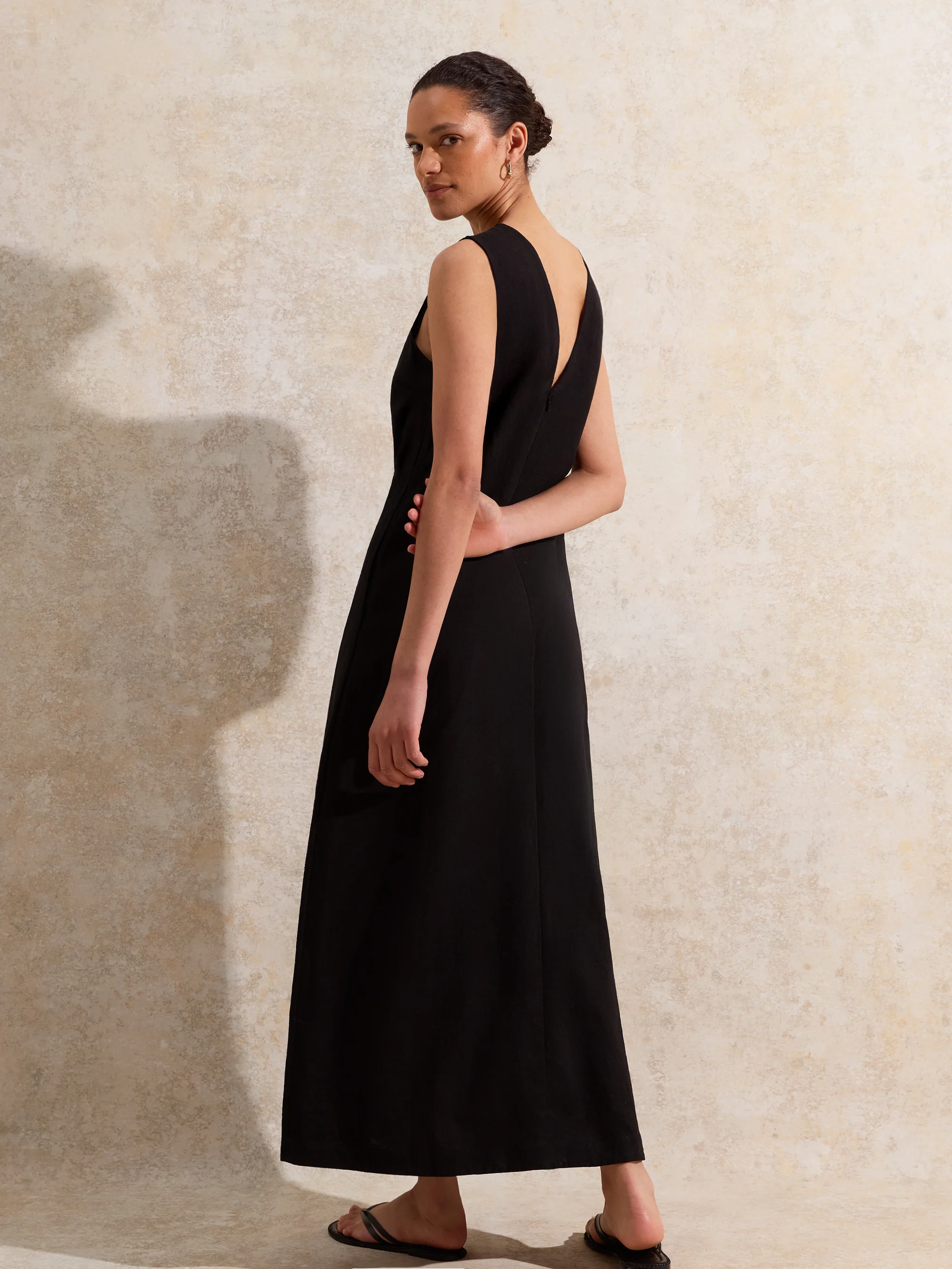 Black Linen-Blend Bias-Cut Maxi Skirt