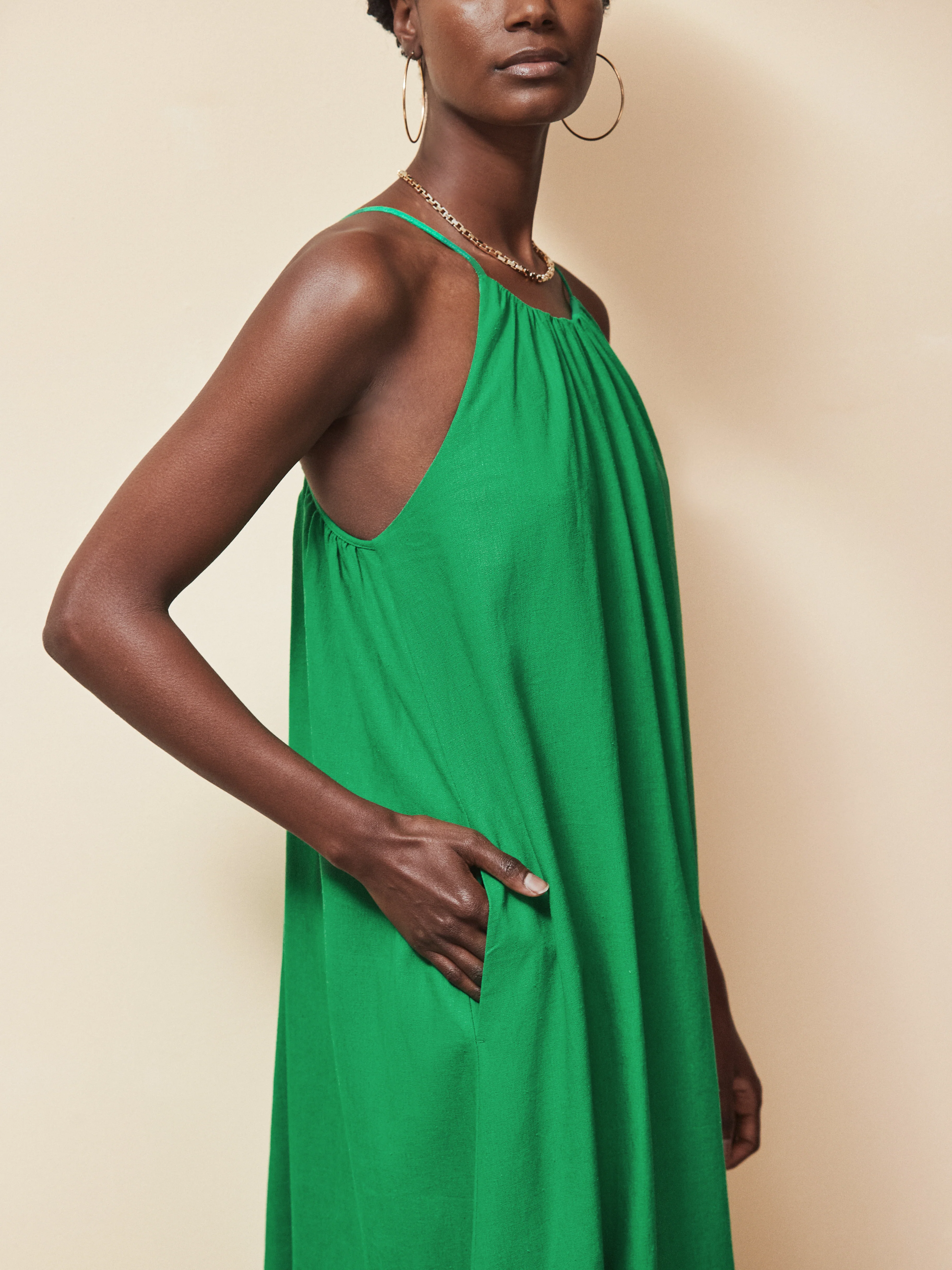 Green Linen Blend Tie Detail Maxi Dress