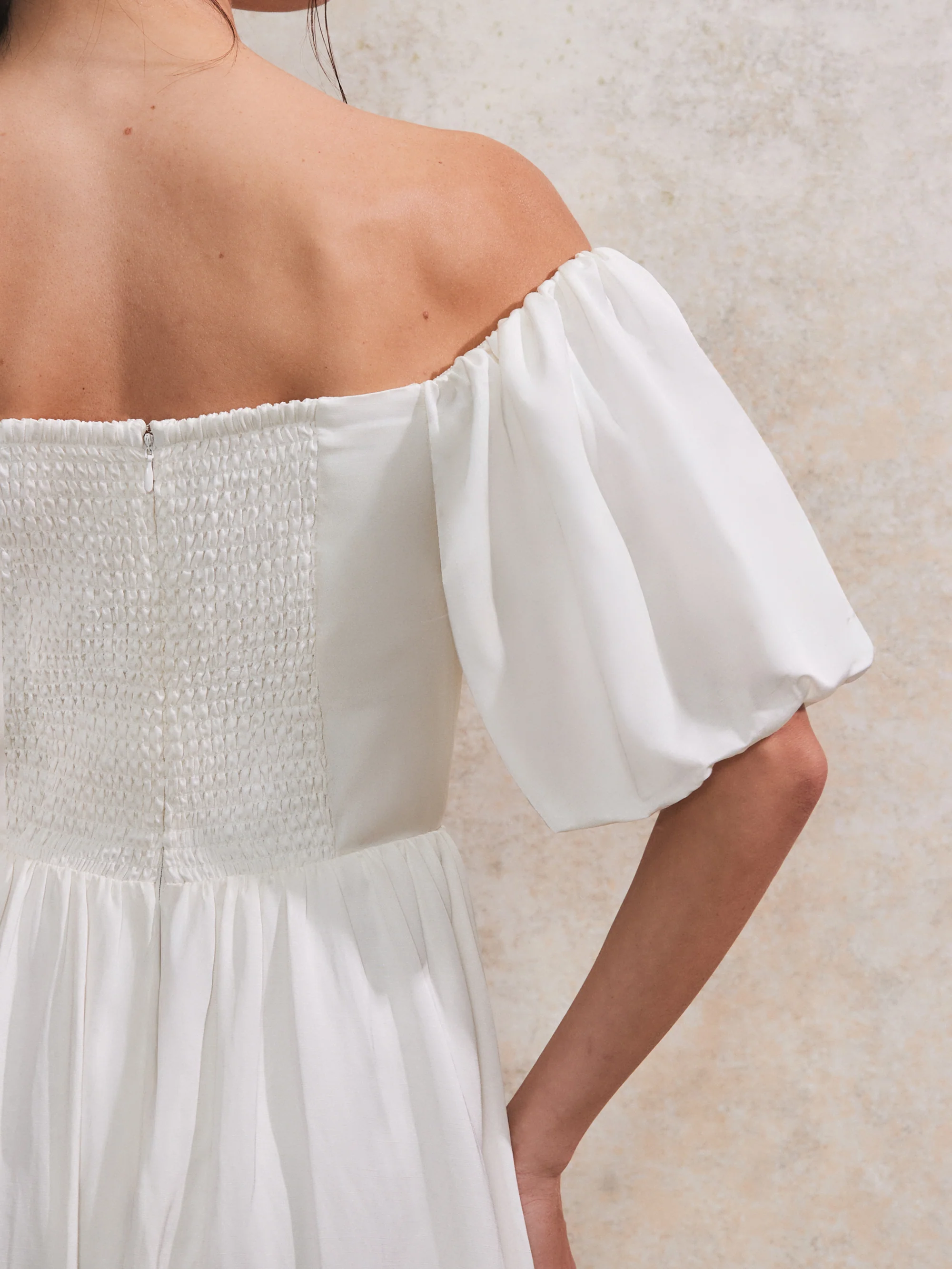 Alba Ivory Bardot Puff Sleeve Maxi Dress