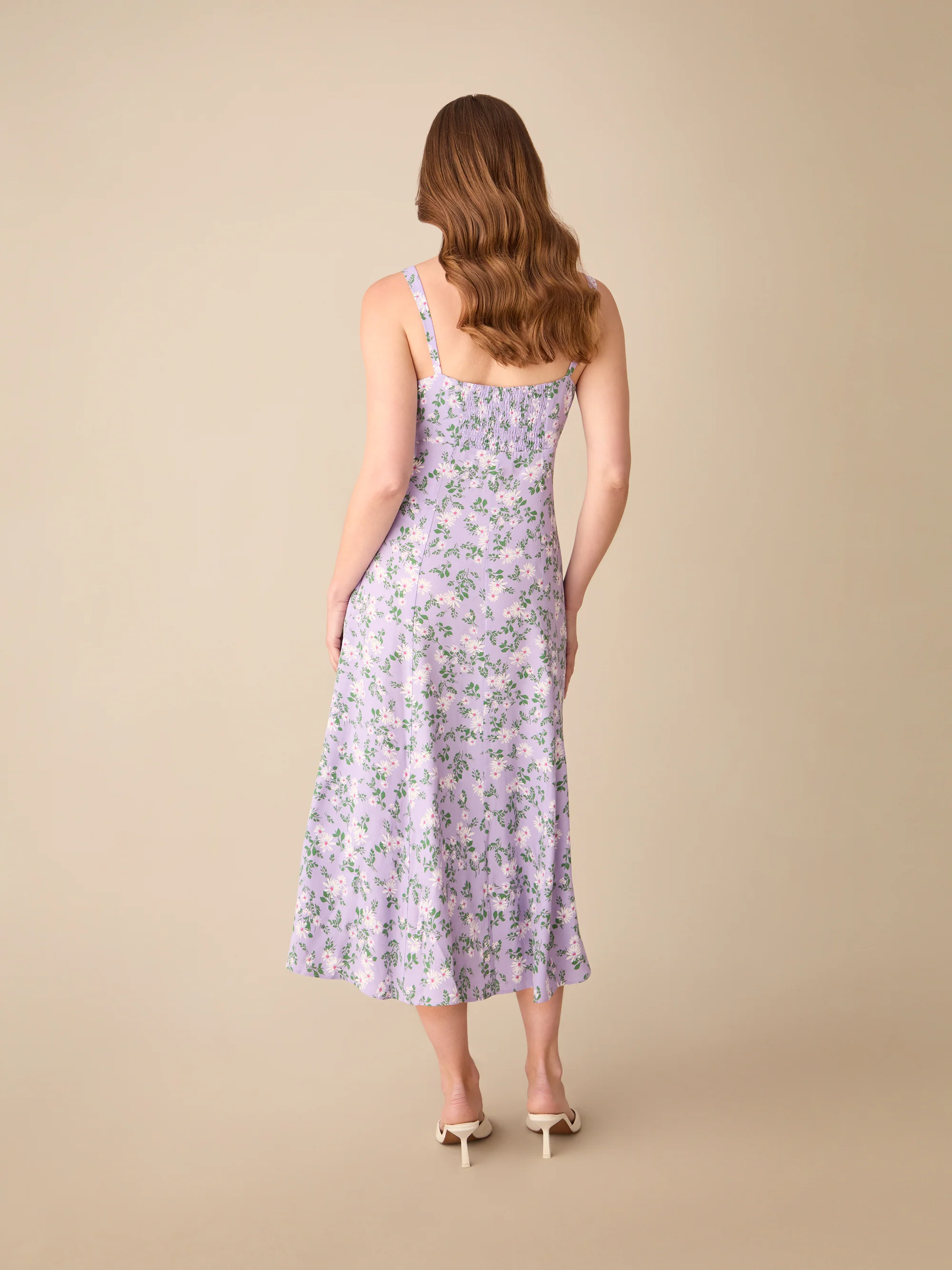 Petite Lilac Daisy Print Strappy Button Through Dress