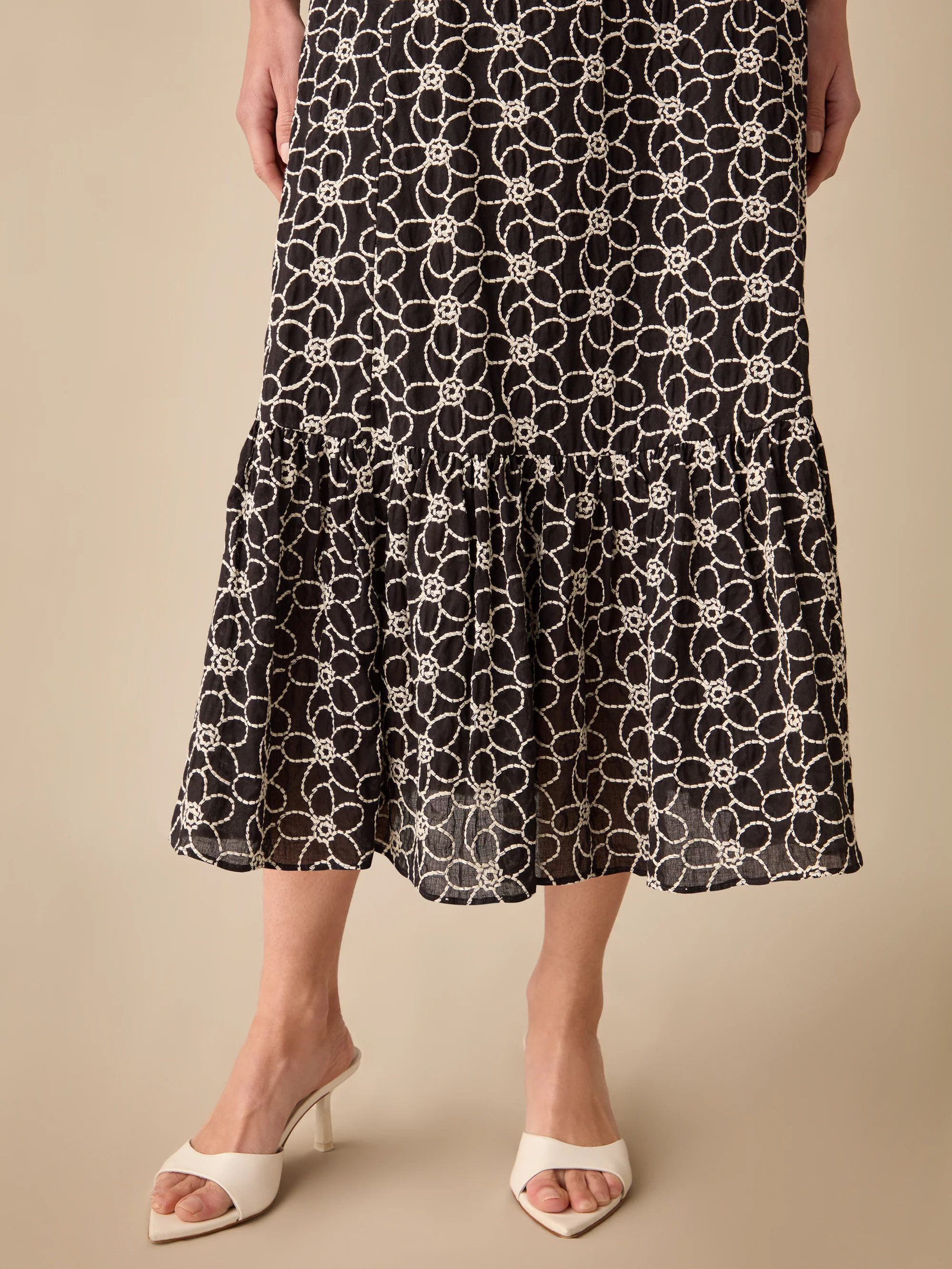 Black Ditsy Floral Print Flutter Sleeve Midi Dress