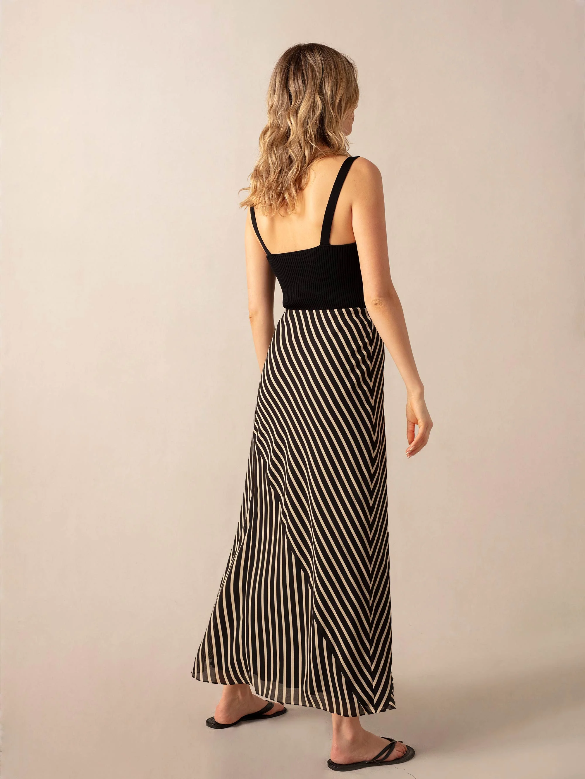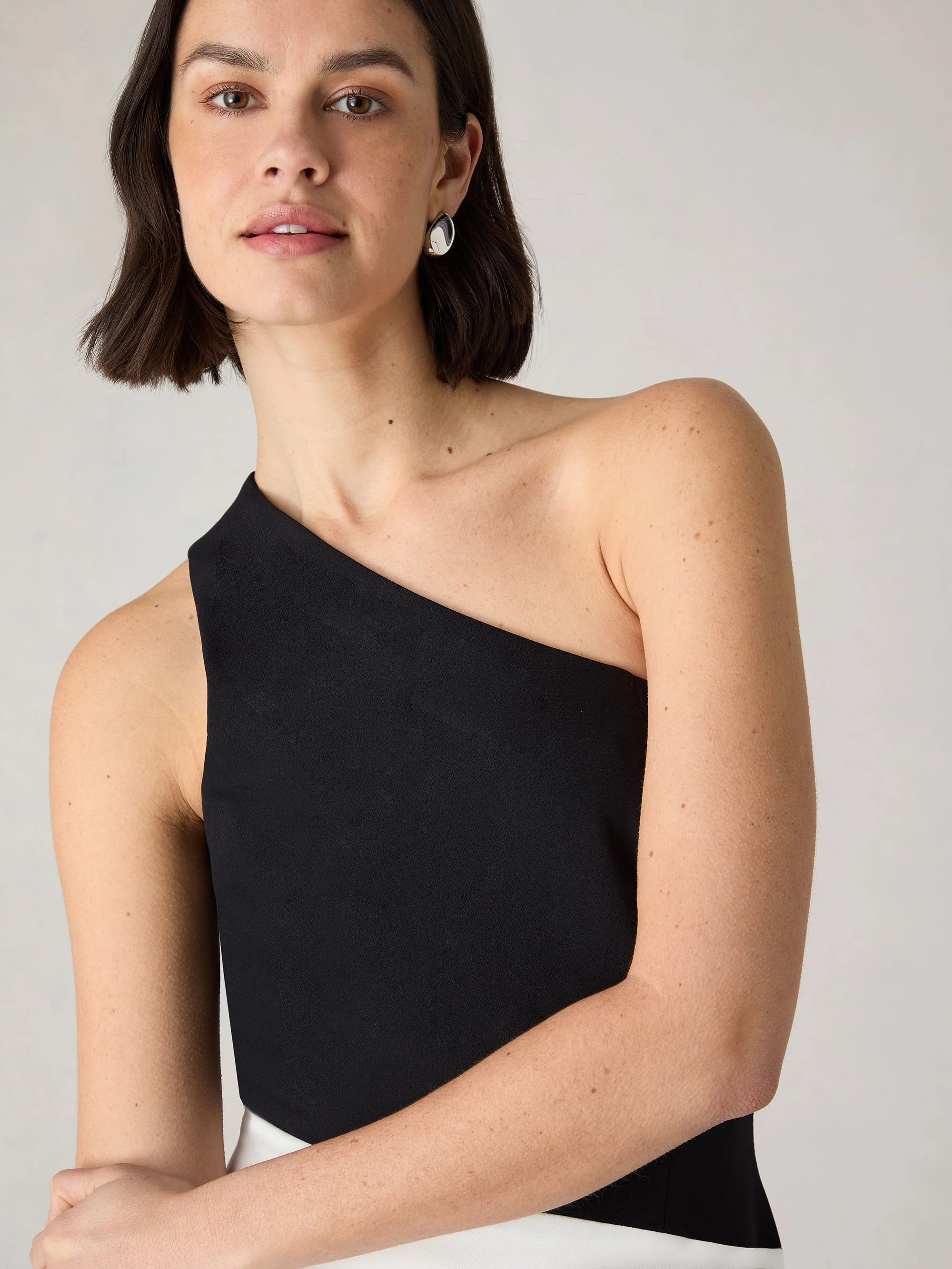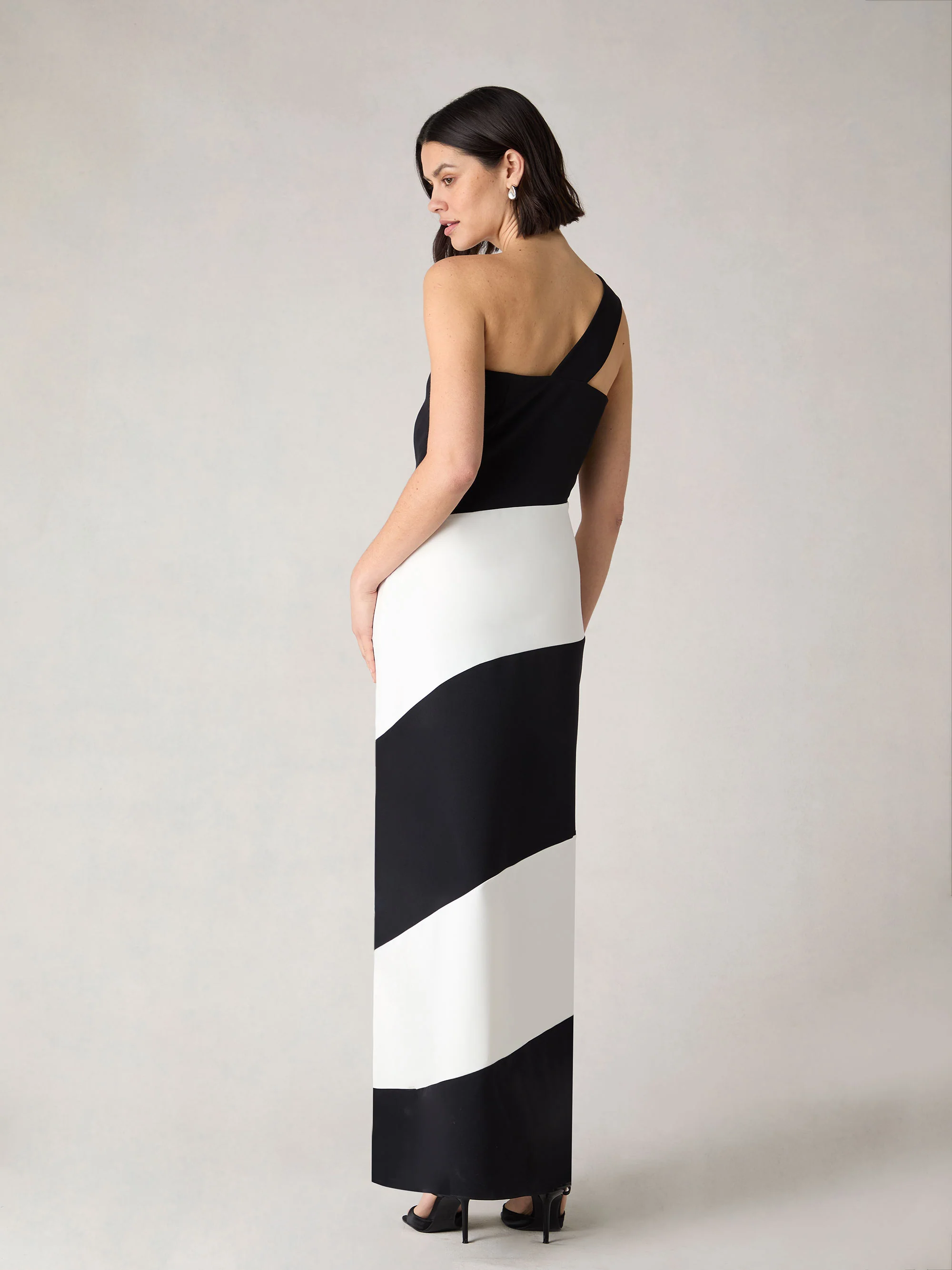 Petite Sofia Mono Stripe One Shoulder Maxi Dress