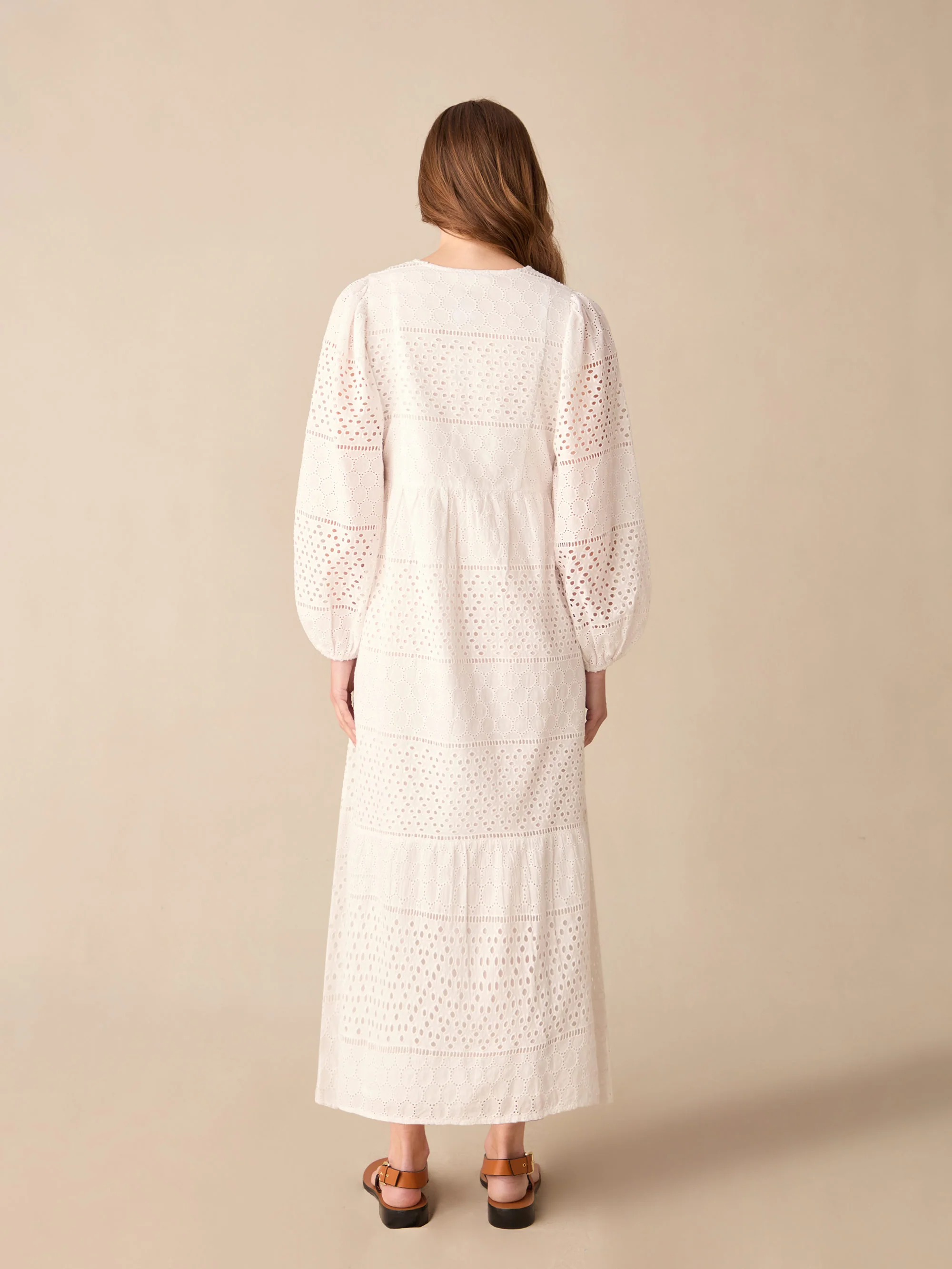 Multi Ditsy Print Shirred Cuff Midi Dress
