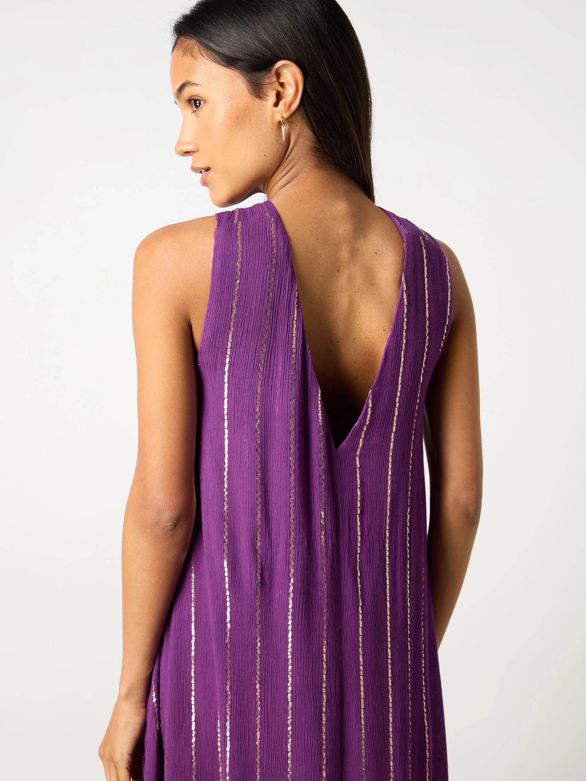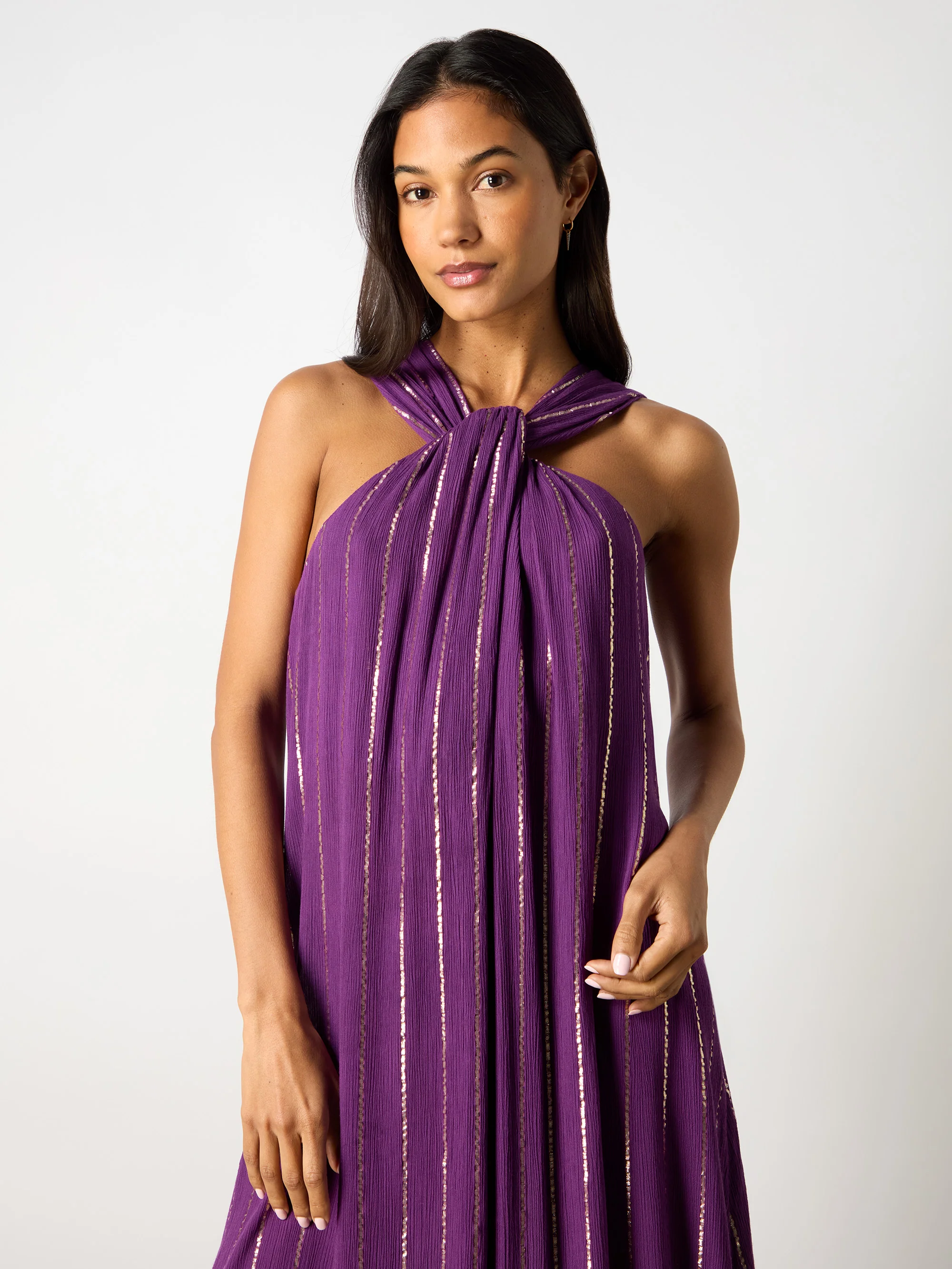 Purple Lurex Twist Neck Maxi Dress