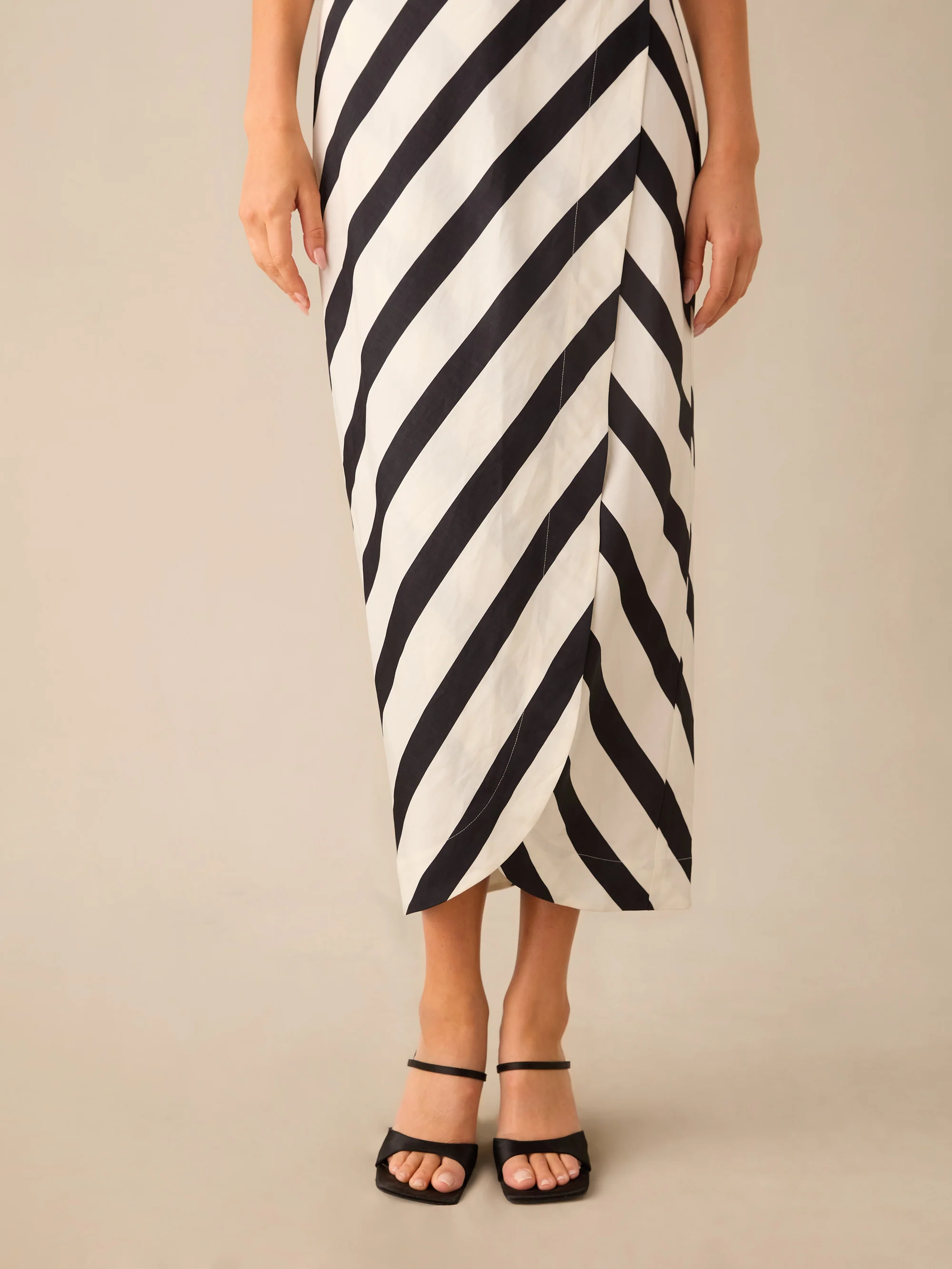 Petite Mono Chevron-Stripe Knitted Midaxi Skirt
