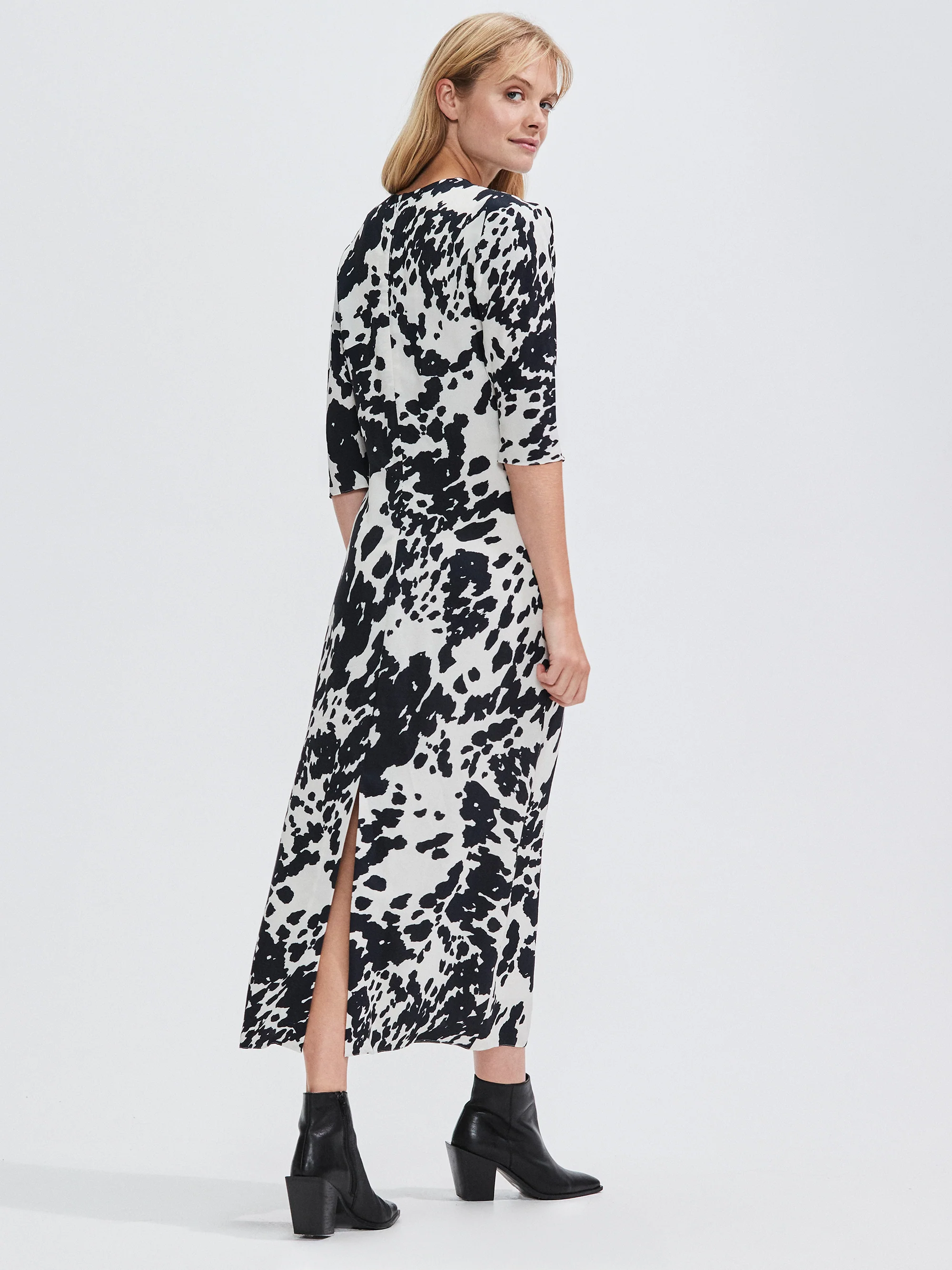 Petite Black And White Ditsy-Print V-Neck Midi Dress